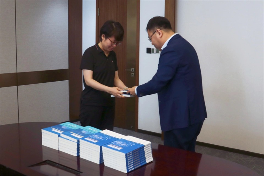 赠书仪式上,企业发展部总监舒炳鑫对金蝶青岛分公司总经理刘晓男、客户经理卢爱琴的到来表示欢迎,感谢其赠书筑梦,与渤海共同成长。后续这些书籍将派送至各子公司,希望大家认真研读,为渤海接下来的财务共享做好充分准备。